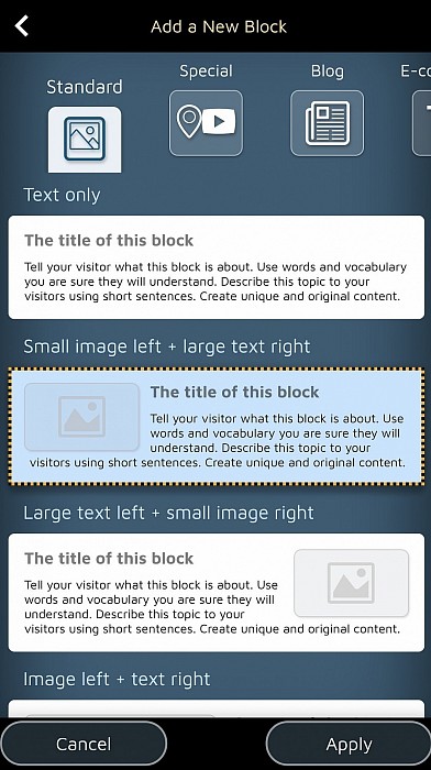 یہ Android Website Builder ایپ آپ کو اپنے مواد کو ترتیب دینے اور اس کی تشکیل پر توجہ دینے دیتی ہے۔ کوڈ سیکھنے کے بجائے اپنے کاروبار کی کہانی سنانے میں اپنا وقت استعمال کریں۔